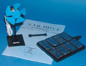 This kit contains solar cells and a motor for experimentation with solar power. It contains a number of solar cells that can be arranged individually or together to provide a greater current or voltage output as required.