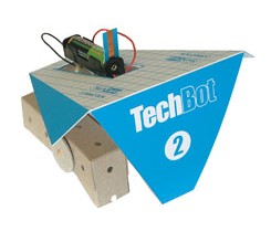 TechBot 2 is on this way - stand clear as he shunts forwards lifting his huge feet as he does so, climbing over uneven surfaces and obstacles that get in his way. He has two mechanical feet connected to an electric motor by two rotating cams.
