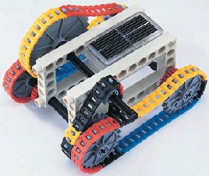 This 190-piece set includes 3 sized chain gears, short frame, long drive axle, motor axle, red gear, chain, solar power pack and guide. The solar buggy can be driven using a 60W bulb within a 25cm distance or through sun exposure. A gearing down driving system is used to reduce the rotating speed of the driven gears and results in the increase in the driven power. The buggy carries a load of 500g.